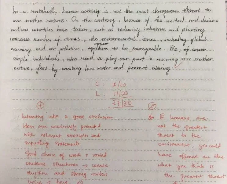While other centres do 1-2 essays every 2-3 months, we make students do 12 essays in 12 weeks. The essays and corrections then go through many rounds of iterations, marked with objective checklists that are 10x more detailed than the open rubrics SEAB gives. We break everything down into a science, making it impossible for low quality writing.